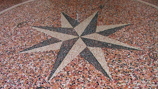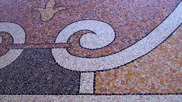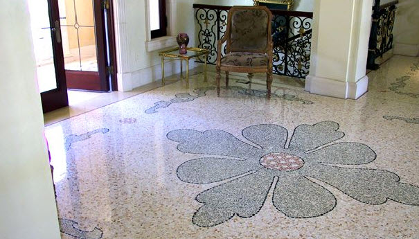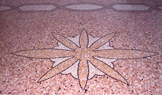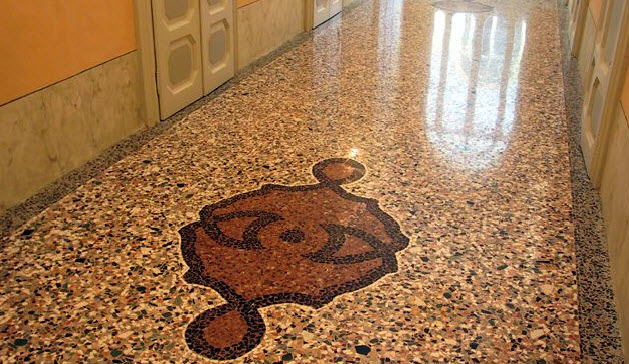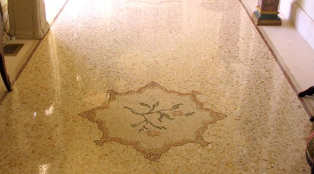 Il pavimento alla veneziana è un'arte dove s'impiegano vari marmi dalle differenti colorazioni, per creare fregi e cornici. Particolare rilievo è assunto dallo studio dell'ambiente, perché la luminosità e gli arredi hanno un ruolo fondamentale.