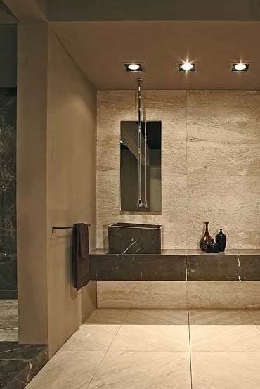 Contaminazioni di genere, ad esempio attraverso l'uso combinato di pietra naturale e vetro, due materiali apparentemente in antitesi tra loro, ma che fondendosi danno vita a qualcosa di più, di diverso dalla semplice somma delle parti.